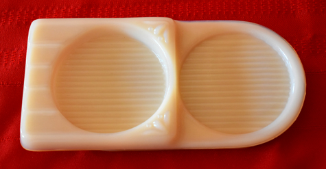 Aladdin manufactured many other products from the Alacite glass. Some of these were: ashtrays, candy dishes, powder dishes, wall tiles, candle holders, egg plates, wall switch-plates, tissue box covers, vase book ends, wall vases, and figurines. Small quantities of dishware items were made from it as well, but a fault of Alacite was that it was quite brittle, making dishware items vulnerable to breakage.