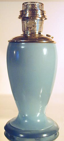 The Alpha series lamps have six small feet instead of the three common to the Venetian vase lamps. The contrasting band of color at the bottom of the vase is painted on the outside while the vase color is fired on the inside of the glass.